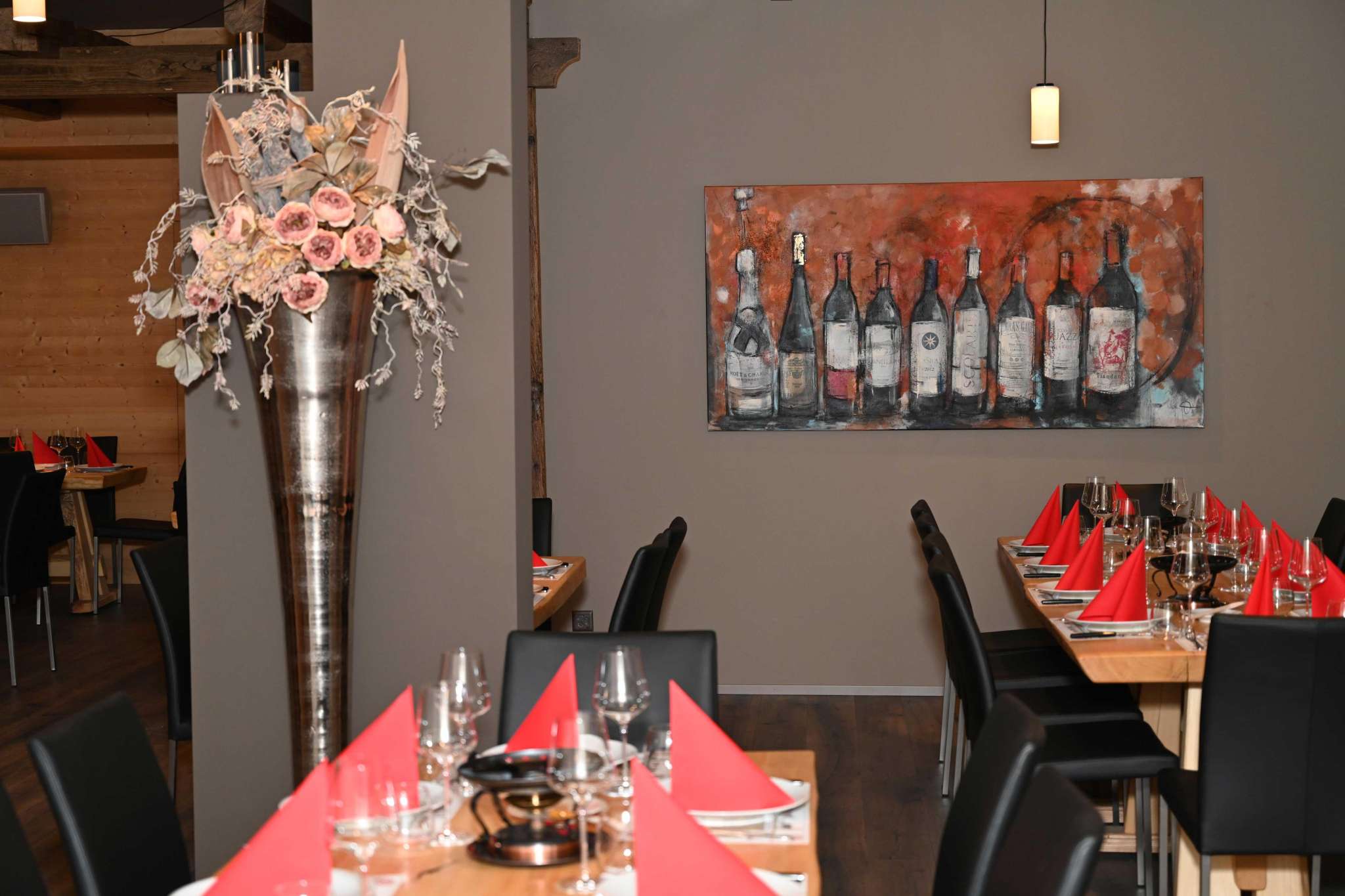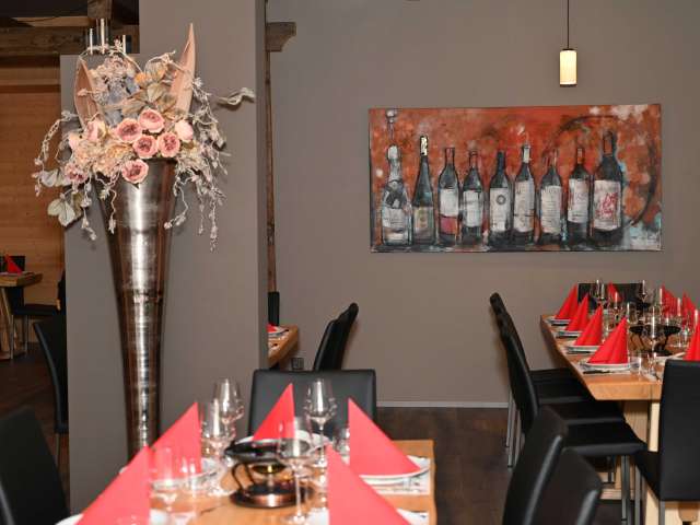 The modern facilities are state of the art and, in addition to a professional kitchen, offer various rooms for individual use. Regional and seasonal dishes are served in the "Vinato Stube", which seats around 50 people. The "Vinato Sääli", with room for around 50 people, and the wine cellar are also available for various events. Guests can select and enjoy the right wine to go with their meal in the vaulted wine cellar with over 500 bottles. The cigar lounge invites you to linger and the visit can be rounded off with a fine rum or whisky. When the weather is fine, you can enjoy yourself on the terrace, which seats around 35 people.