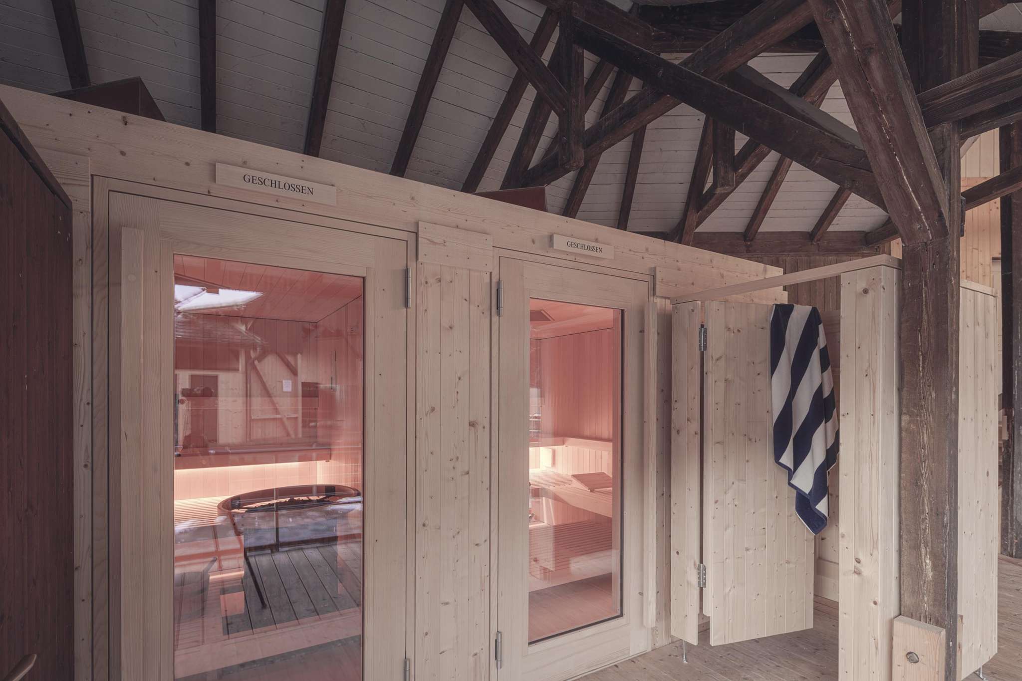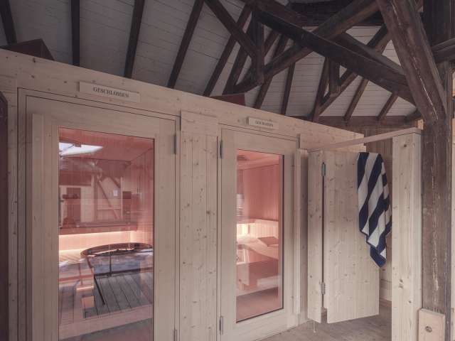The Drei Weihern recreational area is one of the most beautiful natural swimming pools in Switzerland. St. Gallen architects have sensitively built a sauna in the old bathhouse. The aesthetic design is reduced to the essentials: changing rooms with showers, two sauna rooms with different temperatures, and a relaxation room with a view of the forest. The romantic swimming pond invites you to cool off. Spacious, partially covered loungers and seating areas invite you to linger. A bistro with selected drinks and snacks rounds off the offer. A winter oasis of peace, relaxation, and health.