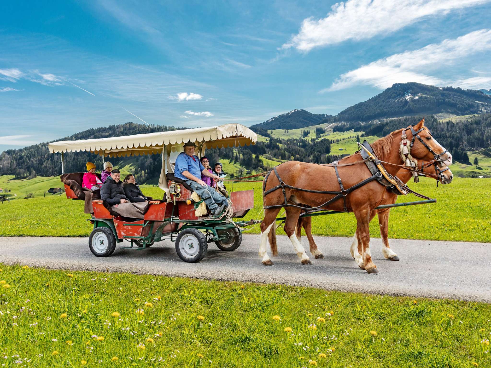 Enjoy a horse-drawn carriage tour through the Appenzellerland which you will remember for a lifetime. Whether a romantic coach trip or an outing with family or friends – the carriages are available for booking at any time.