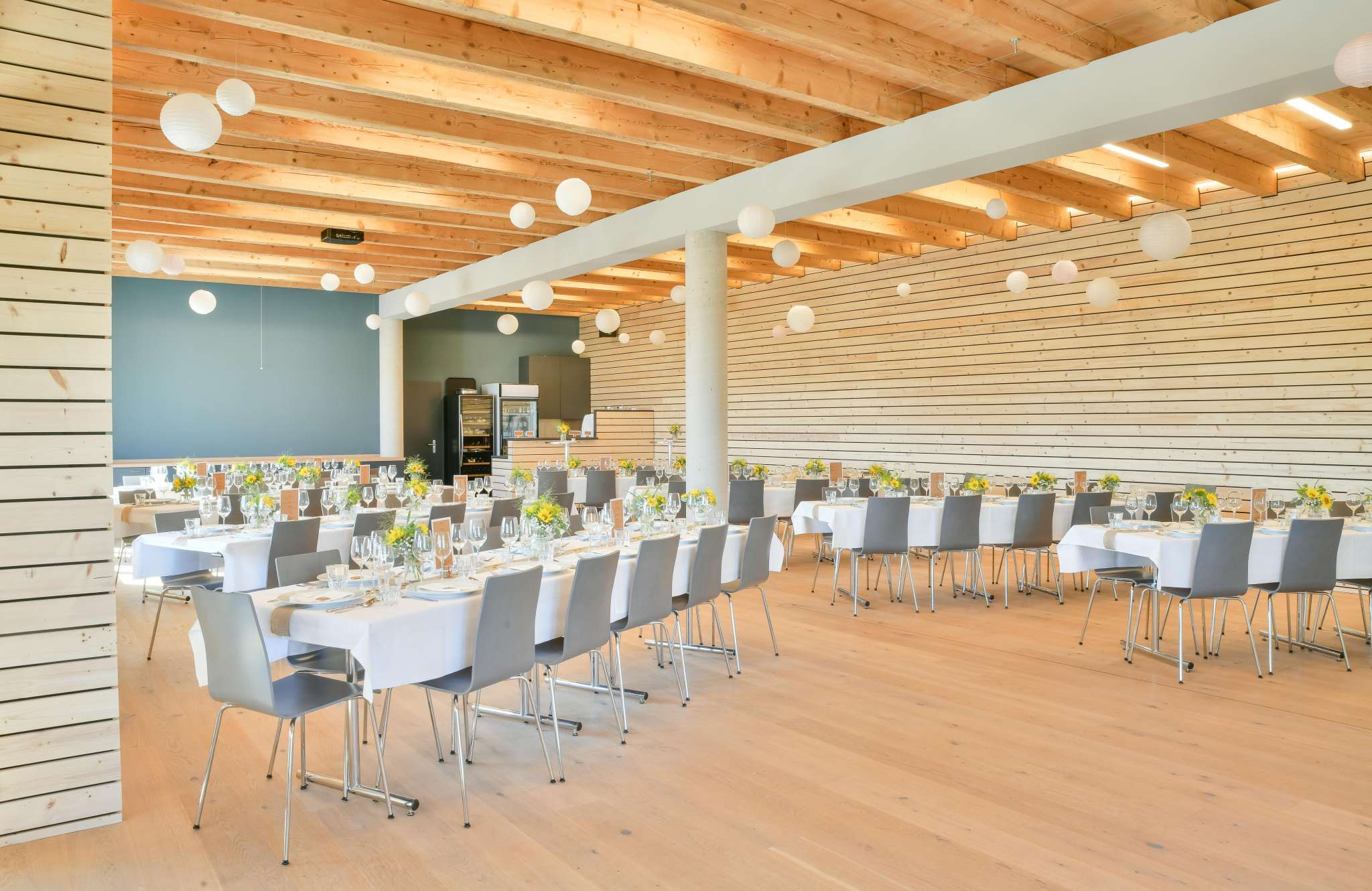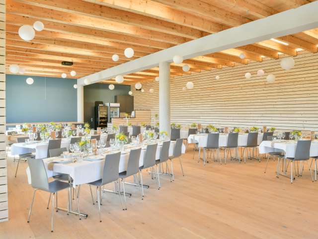Our event restaurant offers the right ambience for different occasions. Book the vaulted cellar for up to 28 people or the modern Fäscht - Ruum for up to 110 people. The covered vine arbor offers space for 90 people.