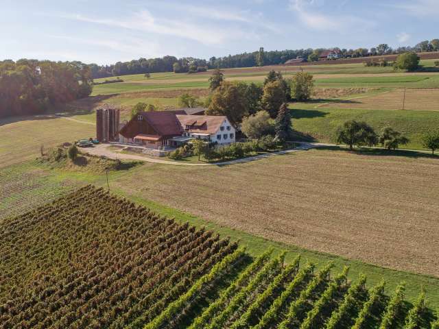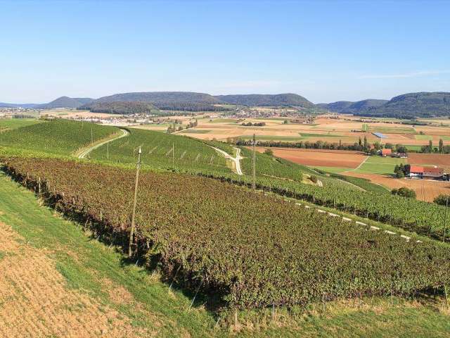The vines shape the view and the image of the Wilchingerberg in a particularly beautiful way. Marvel at the landscape of Klettgau with your guests.