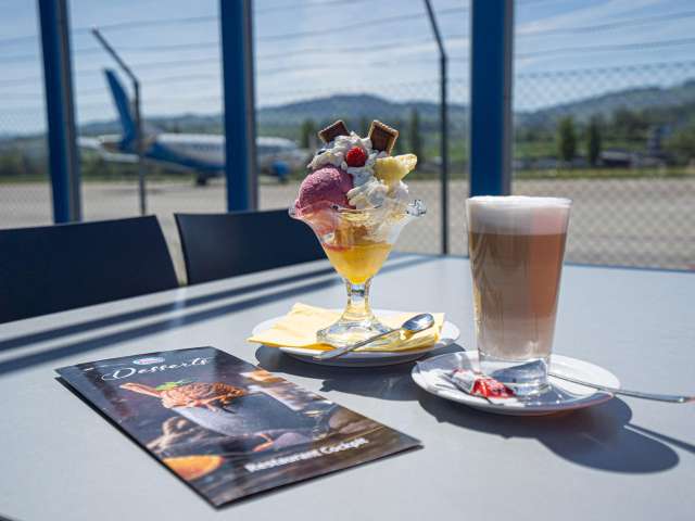 In addition to regional specialties, guests here enjoy an exclusive view of the apron where aircraft from all over the world take off and land. At lunchtime, a varied selection of fresh menus is offered. The small appetite in between is also catered for. In summer, the terrace, also with a great view of the apron, invites you to linger.