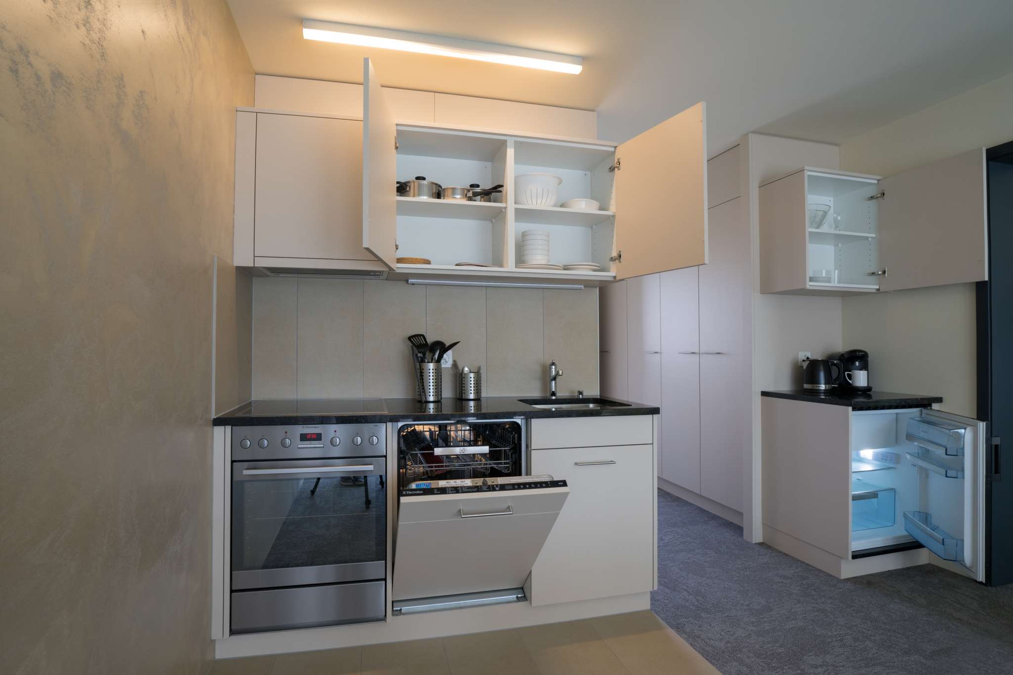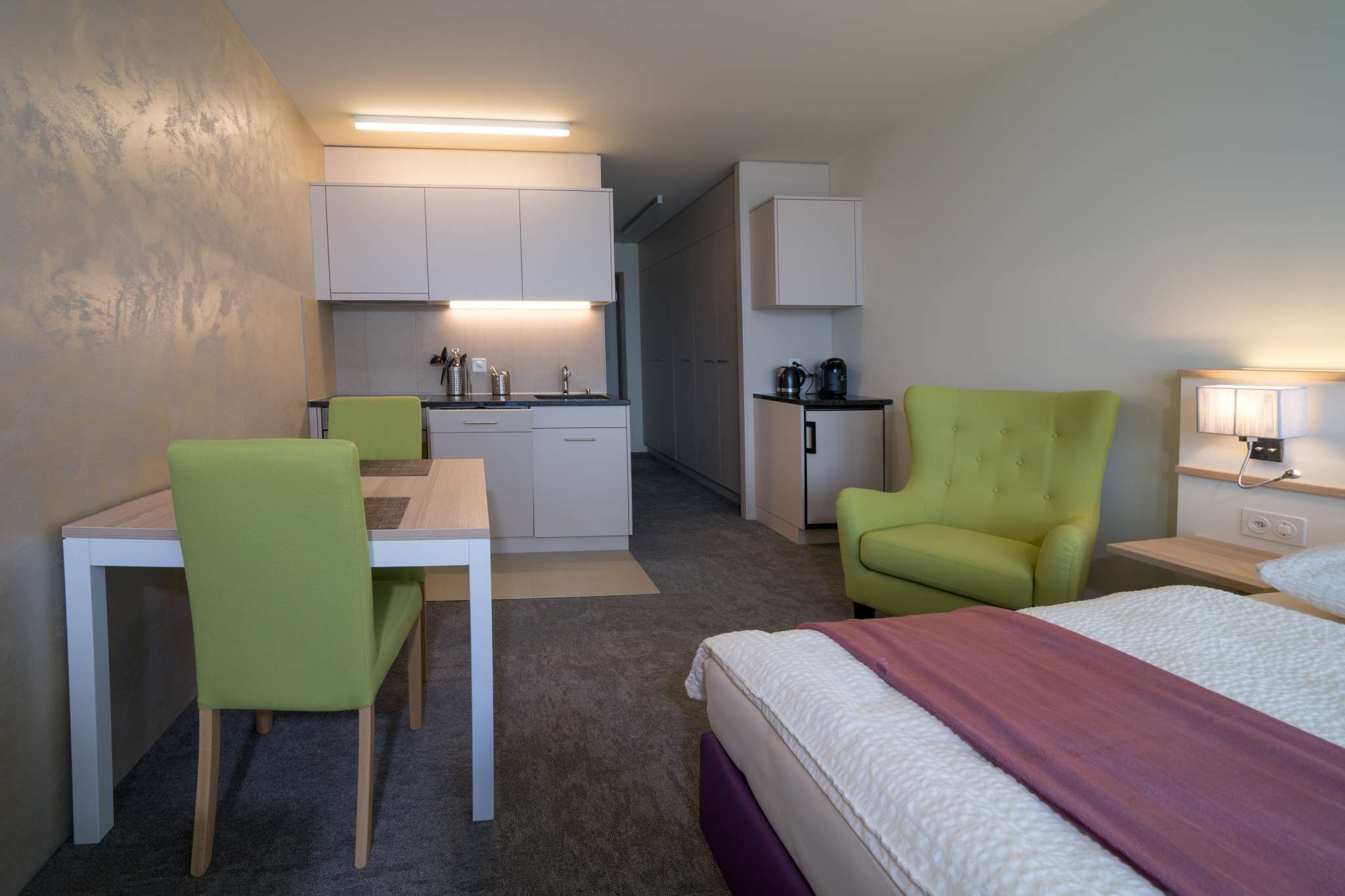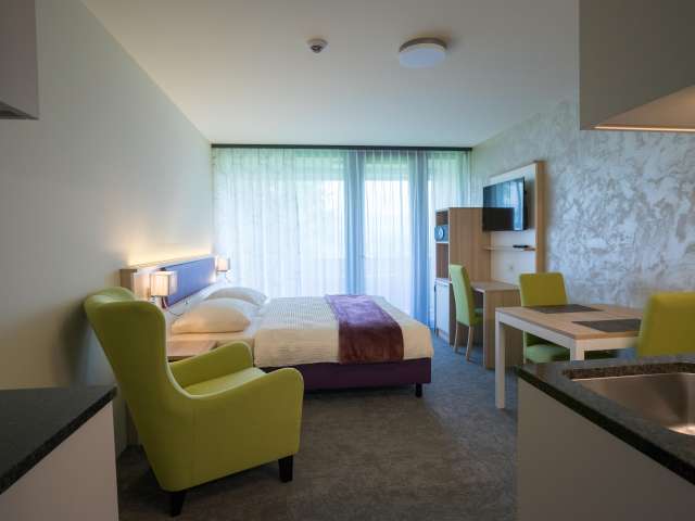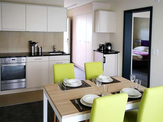 The accommodations are ideal for technicians, service providers on presentation trips and family outings. Each apartment has a fully equipped kitchenette. The comfortable and tastefully furnished rooms provide a homey ambience.