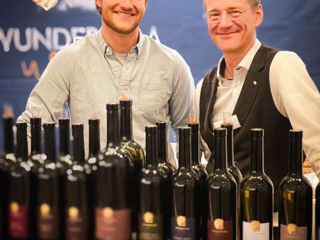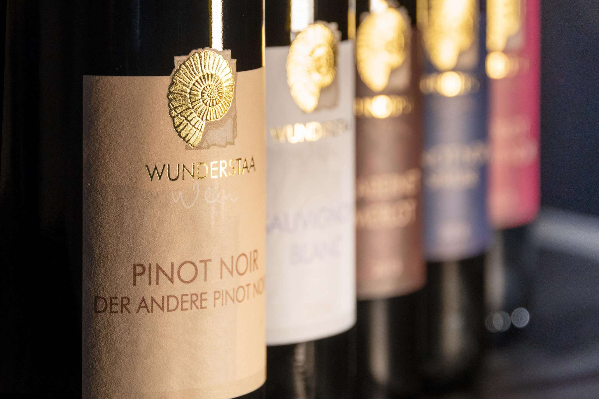 Wunderstaa Wein was founded in June 2016 by wine-loving career changers. Together with our partner winery, we cultivate around 5.5 hectares of vines and market 25,000 to 30,000 bottles of wine from the Müller-Thurgau, Sauvignon Blanc, Pinot Noir, Cabernet Dorsa and Merlot grape varieties every year. Finely distilled premium spirits round off the range.