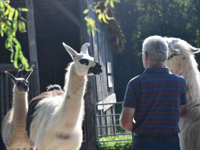 We are happy to facilitate sustainable time-outs for individuals and groups on our llama and minipig farm. People with impairments are also very welcome!