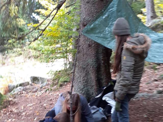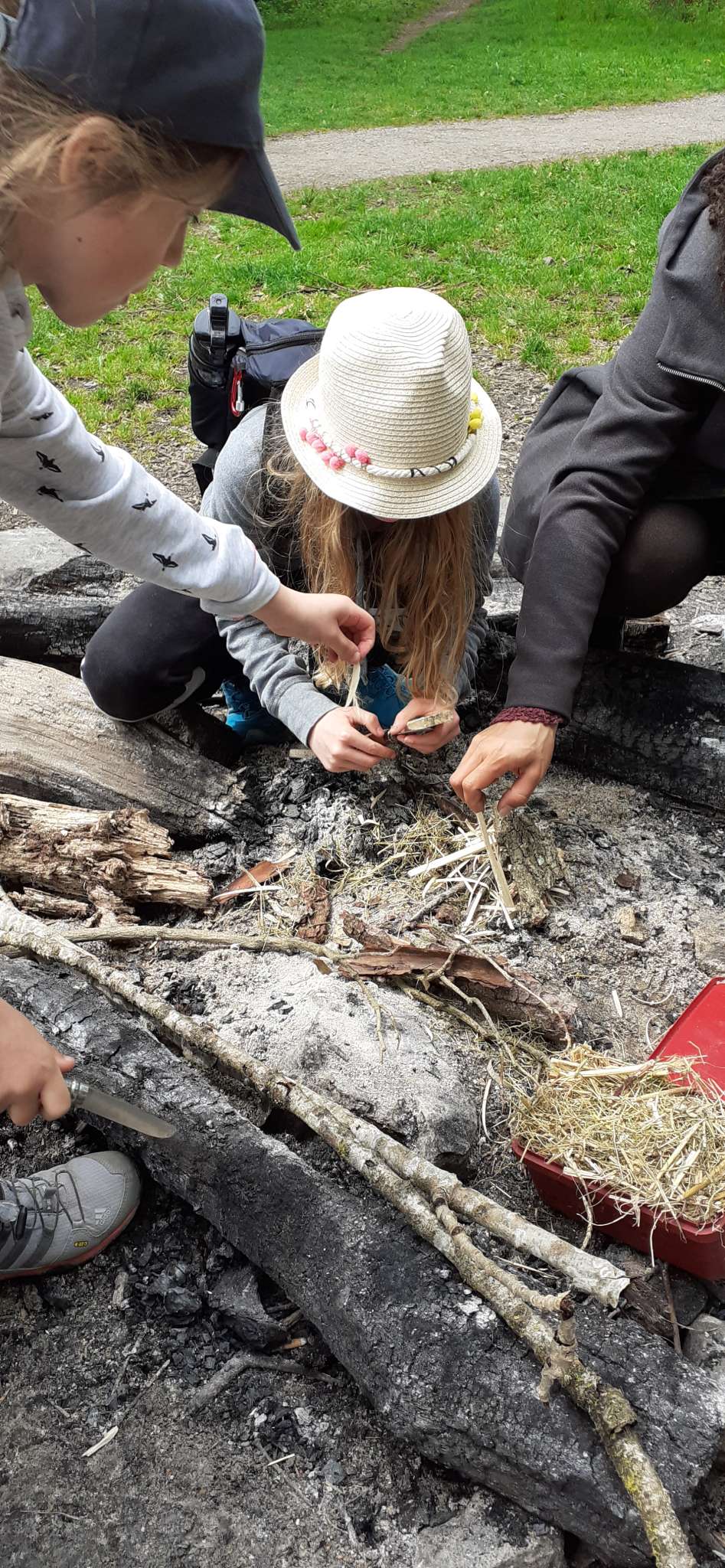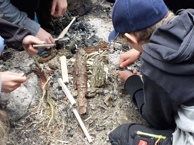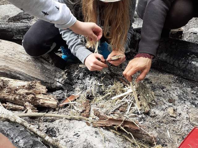 Forest experience day, survival in the wilderness: Participants build a shelter and learn about various fire techniques in the fire workshop. A barbecue can be prepared at the barbecue site at lunchtime.